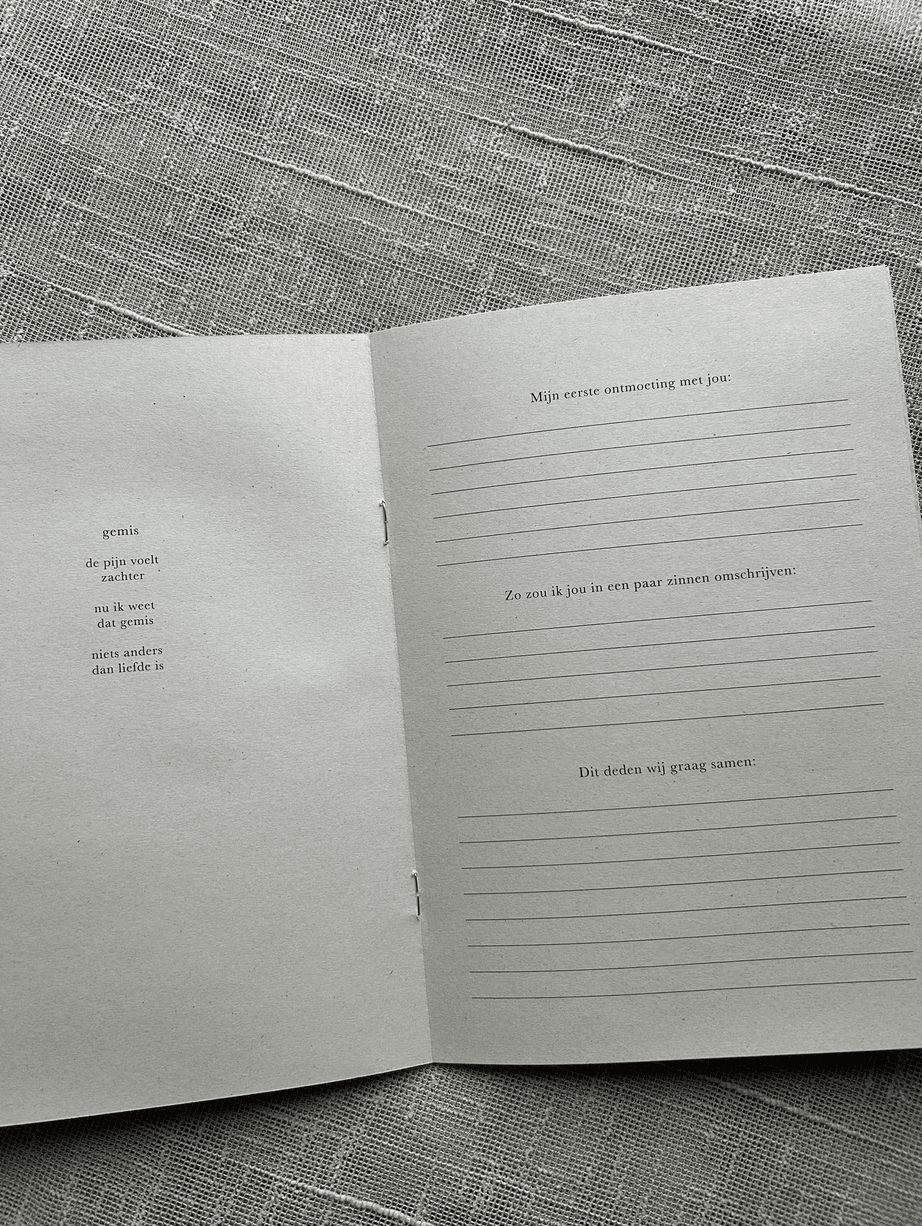 Pure wezens is een klein gedenkboekje (8 pagina’s) voor een dier van wie je afscheid hebt moeten nemen. Om te herinneren, te eren en de liefde dichtbij te houden. Met gedichtjes, ruimte voor een foto en vragen.